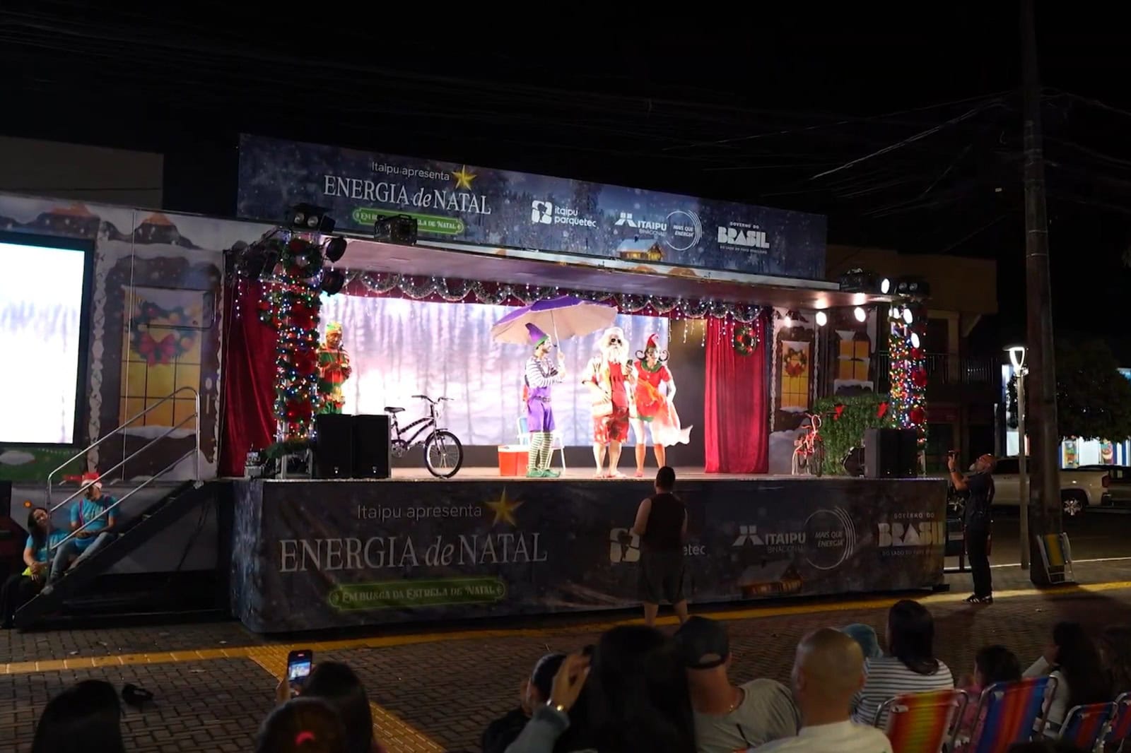 A trupe leva arte, música e mensagens de conscientização ambiental para milhares de moradores. Nos espetáculos, o público vai acompanhar o esforço de Papai Noel para frear o aquecimento global, que ameaça derreter as geleiras de sua terra natal, a Lapônia. Foi aí que um duende tem a ideia de estudar uma região que abriga a recordista mundial em geração de energia limpa e sustentável do planeta: Foz do Iguaçu, terra da usina de Itaipu e das Cataratas do Iguaçu.